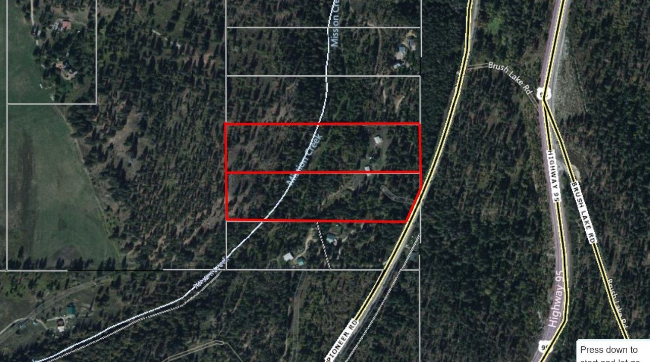 20 Acres of Privacy with a Creek and Spectacular Views of the Kootenai Valley and Selkirk Mtn Range. This 3 bed 2 bath manufactured home and shop on 20 acres (two 10 acre parcels) is located 13 miles N of Bonners Ferry. Mission Creek runs through both parcels. 1996 double wide is 1616 sqft. Interior features include a large kitchen with ample storage, dining room with sliders, living room with mountain views to the SW, 2 guest bedrooms with walk in closets, a guest bathroom, & laundry/mud room with storage. Spacious primary suite has a private bath with walk in shower and dual vanities. Metal shop has a concrete floor, electricity, single bay, and multiple partitioned rooms with storage. Small kitchenette has water storage (no plumbing). Property has a garden shed, large storage shed, established fenced garden and circular gravel driveway. Property has been parked out and nicely treed at the entrance, is level to sloping and steep, private, and has county maintained access year round. Private well (no information). No CCRs, private setting, NE corner of property adjoins USFS.