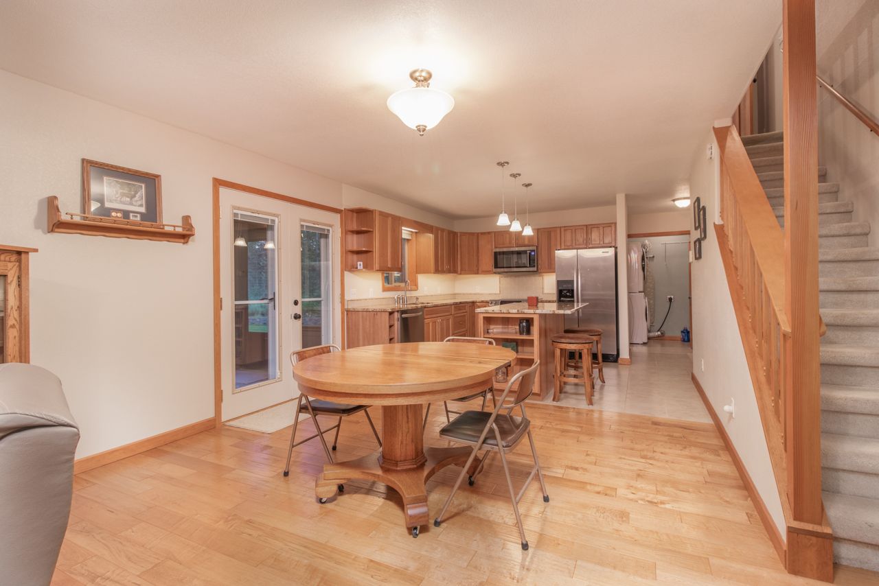 Well maintained 2-story, 1,217 sq ft home on 12.63 private acres w end of the rd privacy, backing up to State Land and Section 16 trail system. The open living space features hardwood flooring & a woodburning stove. The kitchen & dining area are a chef’s delight w granite countertops, ss appliances, kitchen island, & a pantry. French doors lead to a screened-in porch overlooking the meticulously maintained backyard. Main floor features a laundry closet & 3/4 bath w glass-enclosed tile shower. Hydronic heating throughout home & garage ensures year-round comfort. The second level includes two bedrooms, a landing, & a 1/2 bath. The oversized garage w 12' door provides ample room for RV storage/workshop or additional living space. A whole-house generator offers peace of mind. The property also features a 32’x40’ two-bay shop w 12' doors & lean-to for covered storage. The well-maintained yard showcases carefree landscaping, w sidewalks, rock walls, & outdoor storage. 2 separate parcels includes additional building sites w phenomenal rim views. Professionally maintained forestland ensures both beauty & sustainability.