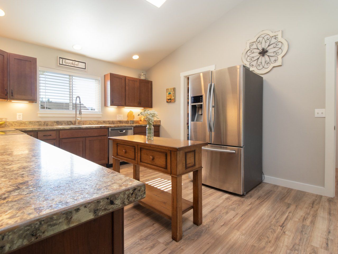 Beautiful 3 bed 2 bath North Idaho home located on the North Bench! Built in 2016 this 1560 sq ft home features a great layout with a welcoming entry and coat closet, open concept living space, modern kitchen with stainless steel appliances and large walk in pantry, and laundry/mudroom with utility sink. Lots of natural light and vaulted ceilings throughout. Extended concrete patio right off living and dining space perfect for entertaining. Master suite features en suite bath with dual vanity and walk in closet. 2 other large bedrooms and bath. 1.36 acre property is level and open with southern exposure. Attached 2 car garage. Great location close to town and amenities.