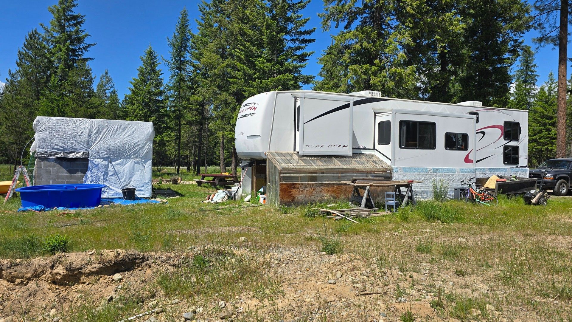 Beautiful 4.70-acre parcel on Katka Rd. in Bonners Ferry—level, wooded, and ready for your North Idaho vision. Power and septic are in place, plus a 2007 Endura Max travel trailer is included for immediate use. No CCRs or HOA. Property is surveyed with county-maintained road access; buyer to install driveway and drill a well. Bath house, chicken coop, fenced garden area, and mountain views already on site. Peaceful setting with mature timber, abundant wildlife, and room to build, homestead, or recreate.