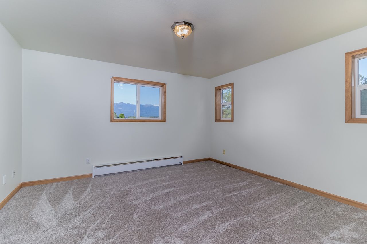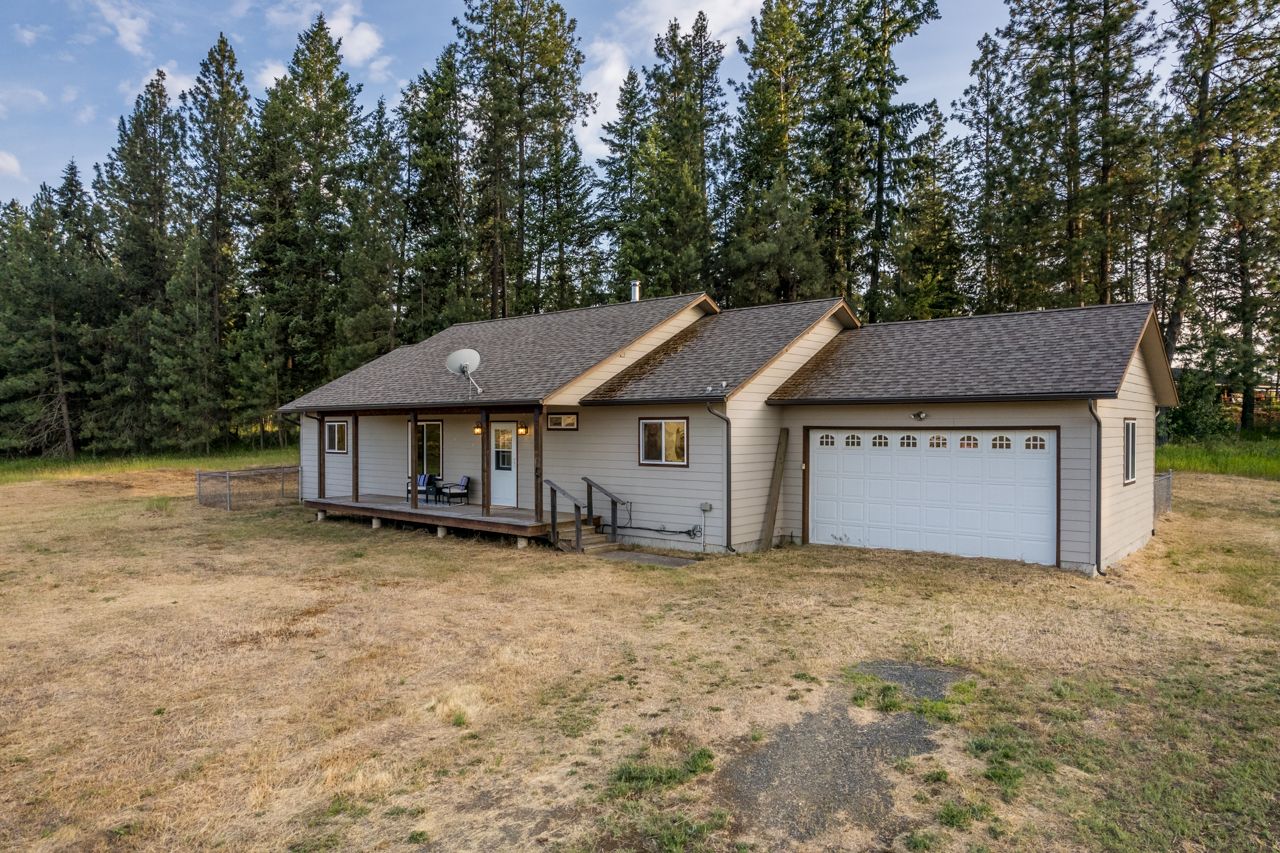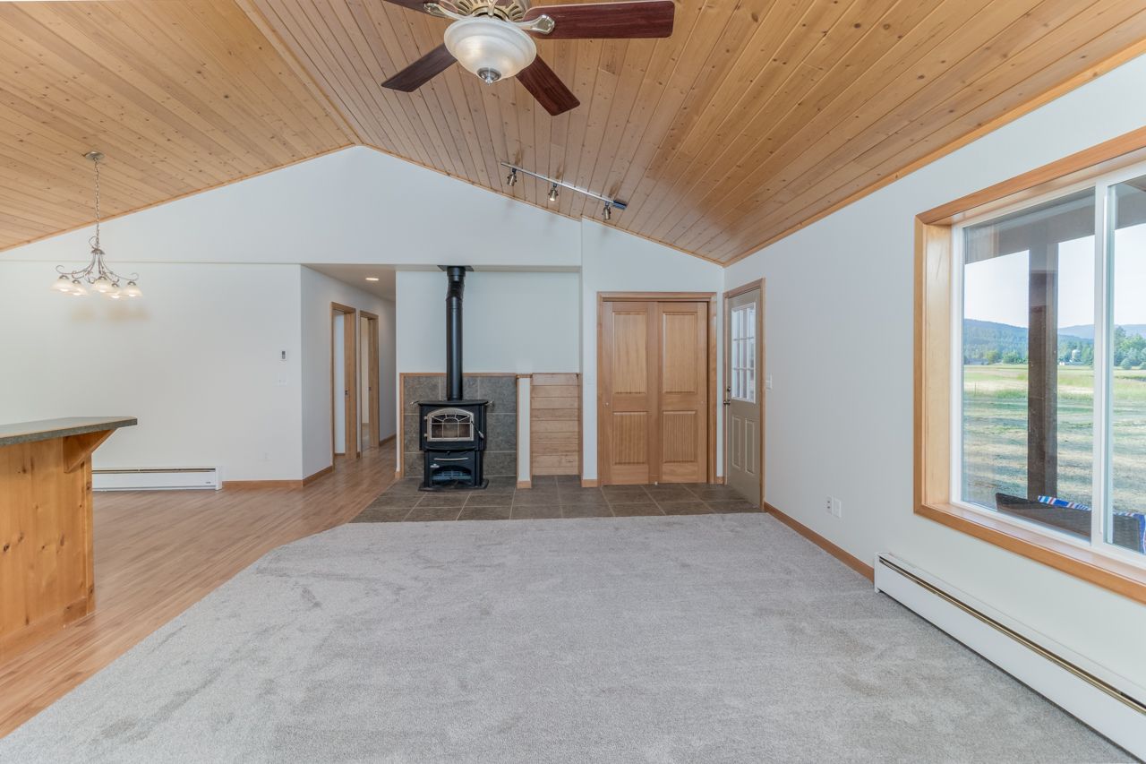 Move into this refreshed 3 bedroom 2 bathroom home on the Moyie Springs Bench! This 1442 sq ft home is ready to make your own, located on 1 acre at the end of a quiet cul de sac. Featuring vaulted tongue & groove ceilings, a wood stove, new carpet and mountain views. Enjoy the open concept living space with kitchen and dining. Split bedroom floor plan. Master suite includes a walk in closet, and en suite bathroom with shower, linen storage and outdoor access to private covered deck. 2 good sized bedrooms with large closets. Spacious 2nd bathroom with plenty of storage and garden tub/shower combo. Large laundry room with storage closet! Attached 2 car garage. Your 1 acre property has beautiful views of the Cabinet and Purcell Mountains with plenty of space and potential!