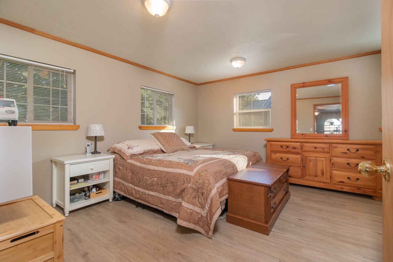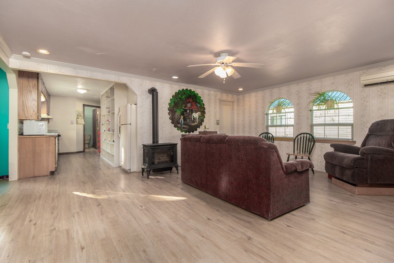Charming Single-Level Home in the quaint neighborhood of Moyie Springs. This inviting 1204 sq ft residence features 3 bedrooms and 2 bathrooms and a 34x46 attached 2 car garage/workshop. Enjoy the open layout, perfect for modern living and entertaining. The galley kitchen boasts a wall of shelving, providing ample storage for all your culinary needs. The home is move-in ready, complete with luxury vinyl plank (LVP) flooring and a mini-split AC system to keep you cool during the summer months. Central bathroom & doors are wheelchair-accessible. A roll-in, tiled shower creates a large functional shower area. 2nd Bathroom has a stackable laundry and shower. Outside, the fenced front yard is adorned with mature trees, offering both privacy and shade. 1564 Sqft of garage parking & versatile workshop with multiple rooms and a dedicated spraying bay, perfect for hobbyists or professionals. This property is a perfect blend of comfort, convenience, and functionality. Don't miss the opportunity to make this charming Moyie Springs home your own!