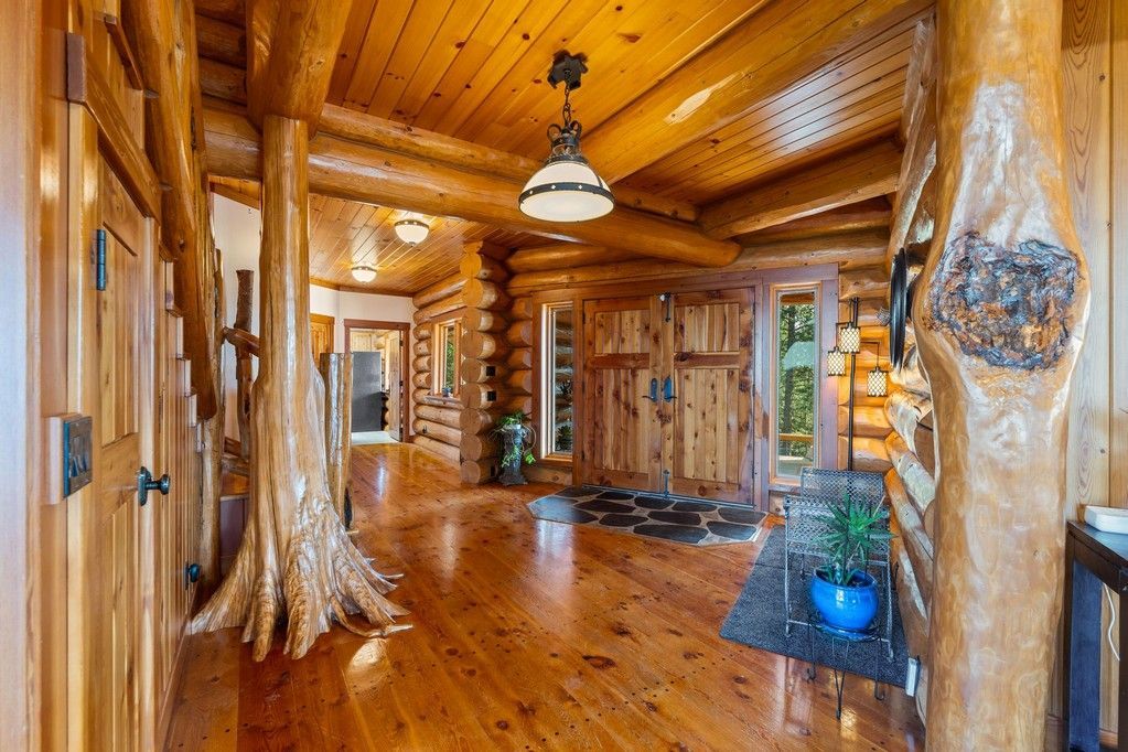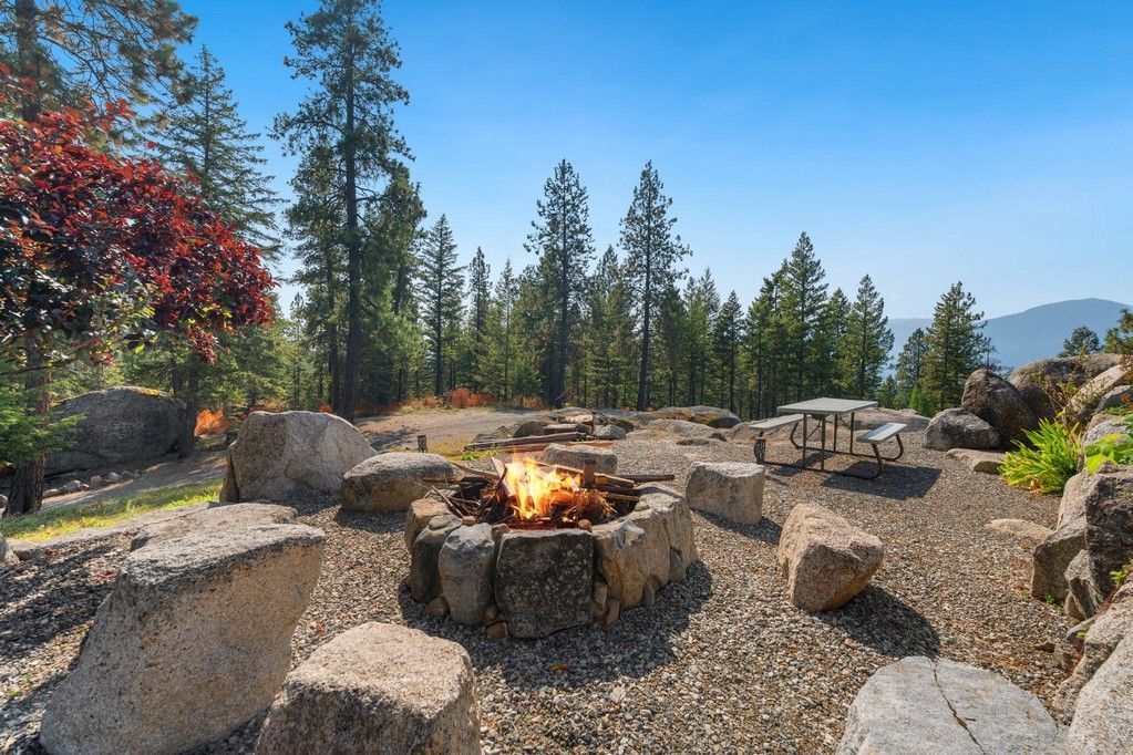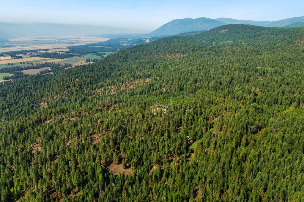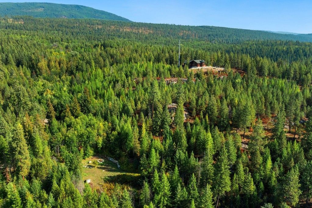Extraordinary unique Caribou Creek Log Home set atop a dramatic granite outcrop. 28 private acres overlooking the breathtaking 360° views of the Kootenai River, this luxurious off-grid home blends timeless craftsmanship w modern sustainability. The 3-bed, 2 full + 2 half bath home features a massive stone fireplace, a gourmet kitchen w granite counters, and a glass-surround dining room; home features views and natural light from every room. A full-size elevator connects all three levels for convenience. Architectural details include hand-scribed logs, live-edge tree posts, and an “eagle’s nest” room wrapped w windows. Fully independent—off-grid, w state-of-the-art alternative systems and a 40 gpm well. Includes a 40x60 shop w wood heat, built-in shelving, and a loft; a generator shed; terraced rock landscaping; wraparound decks; and borders USFS. Plus a 960 sq ft 1 Bed/1 Ba guest cabin features a full kitchen, bath, and open loft, complete w generator, propane/wood heat, and septic.
