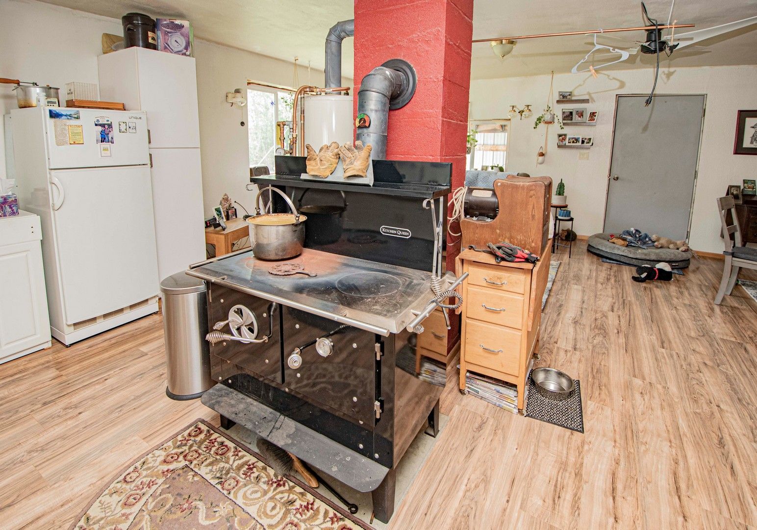 Escape to self-sufficiency on this 43.70-acre off-grid retreat with a year-round creek. Designed for independent living, the home features an open floor plan with both wood and propane cookstoves, a propane fridge, and a wood-burning water heater. Power is provided by a solar system with a new battery bank, plus propane lighting. The home is wired for 110, 220, and 12-volt. A spring-fed water system with a 1,200-gallon cistern supplies gravity-fed water to the home. Fall Creek flows year-round at the base of the property, adding to the natural beauty. Outbuildings include two workshops with lean-tos, a bunkhouse, large root cellar, woodshed with loft, and a garden area with raised beds and hoop house—perfect for growing your own food. This is true off-grid living, offering privacy, simplicity, and peace of mind.