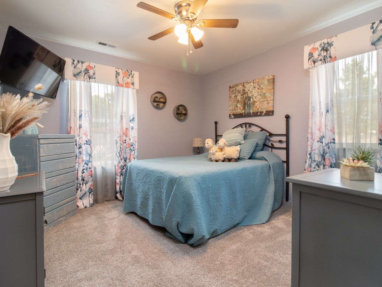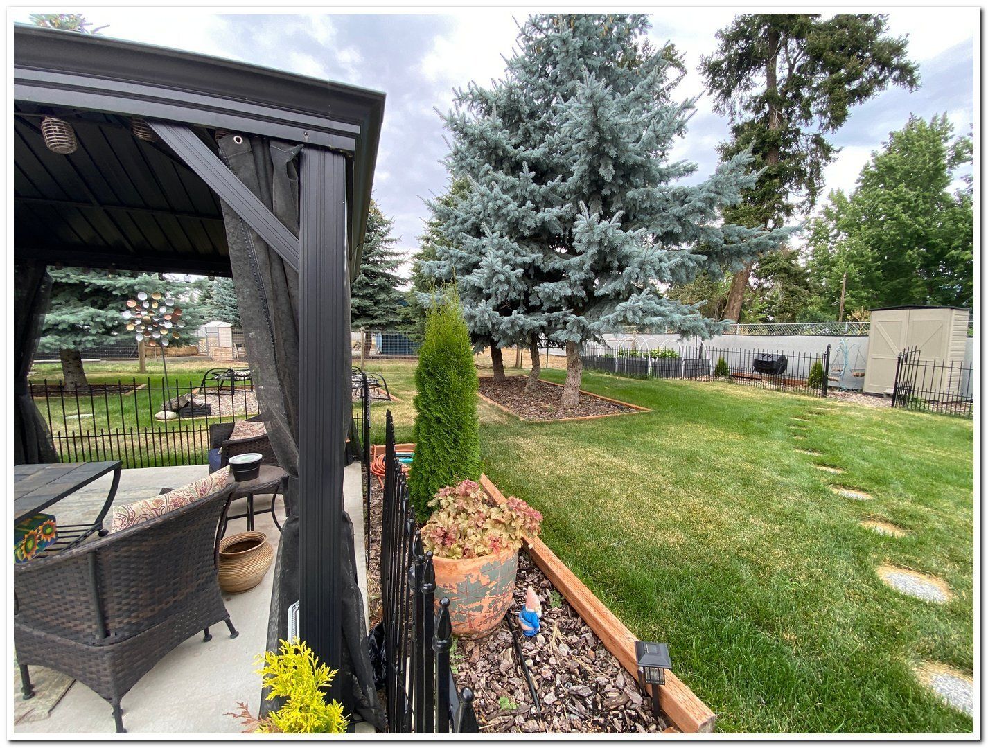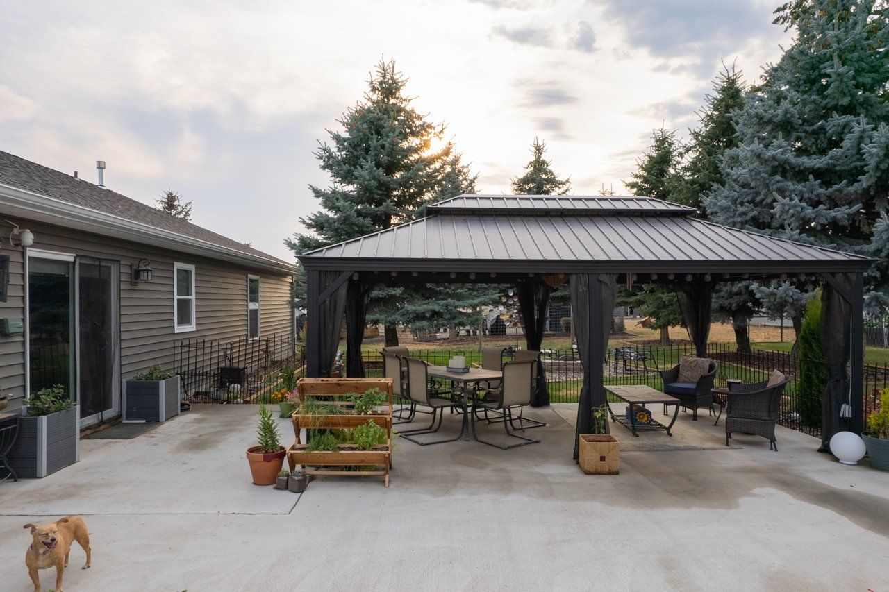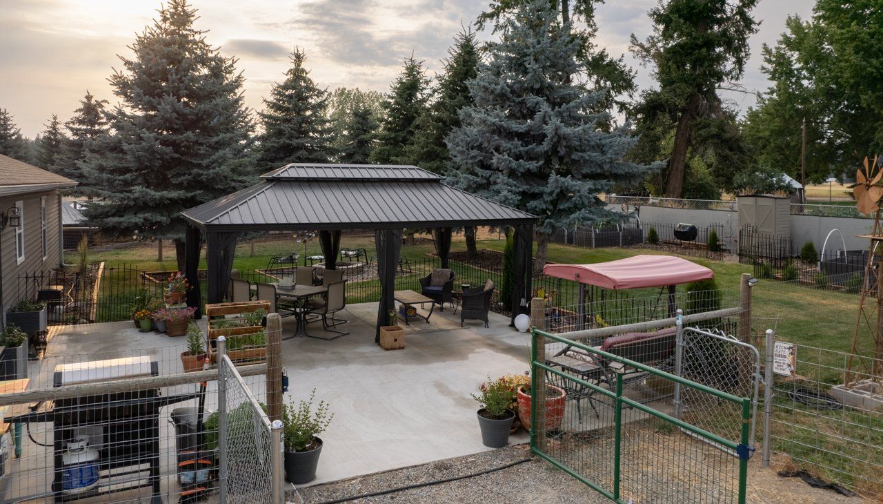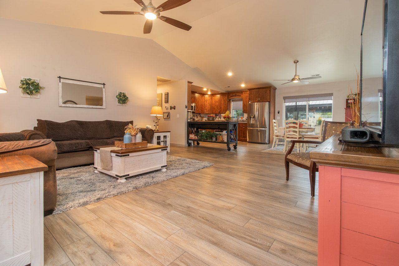 Mini Hobby Farm. Immaculate, single level 1729 sq ft home built in 2019 on a .96 acre lot surrounded by mountain views. 3 bdrms 2 baths, storage rm or office, primary suite, & 2 car garage on landscaped acreage. A/C, ceiling fans, automatic light switches, & custom window coverings, are just a few of the extra custom touches. Stepping onto the oversized concrete patio, you will find yourself immersed in a manicured setting which includes a gazebo, fire pit, sprinkler system for a lush, green lawn, raised garden beds, & walking paths. Fenced and cross fenced side yards to house small animals, such as sheep, goats, and chickens. Multiple sheds for storing animal feed, garden tools, or workshop space. Natural gas, wireless internet, & city water and electric. No CCRS. Enjoy the best of rural living in this private cul-de-sac with ease of access.