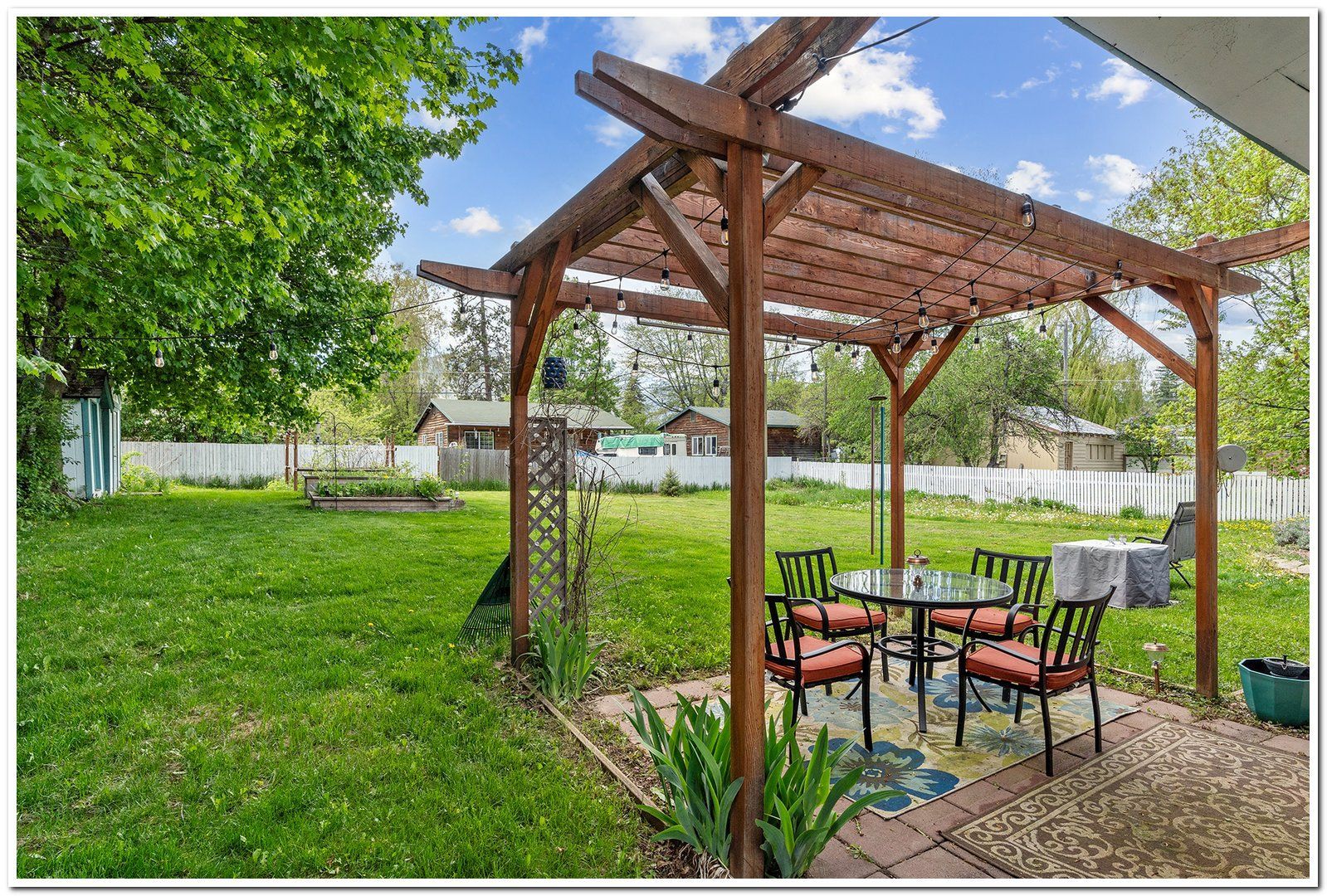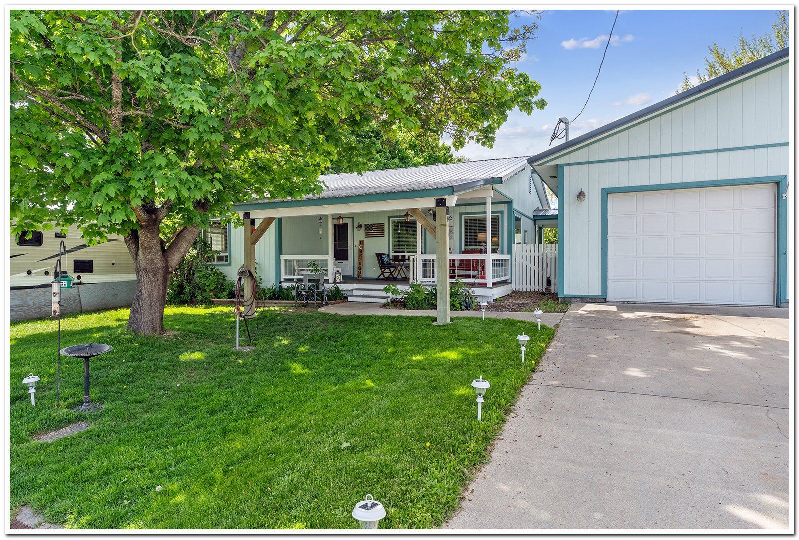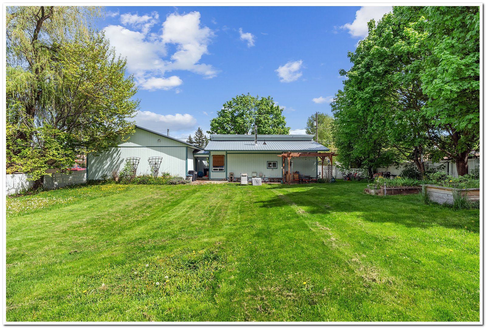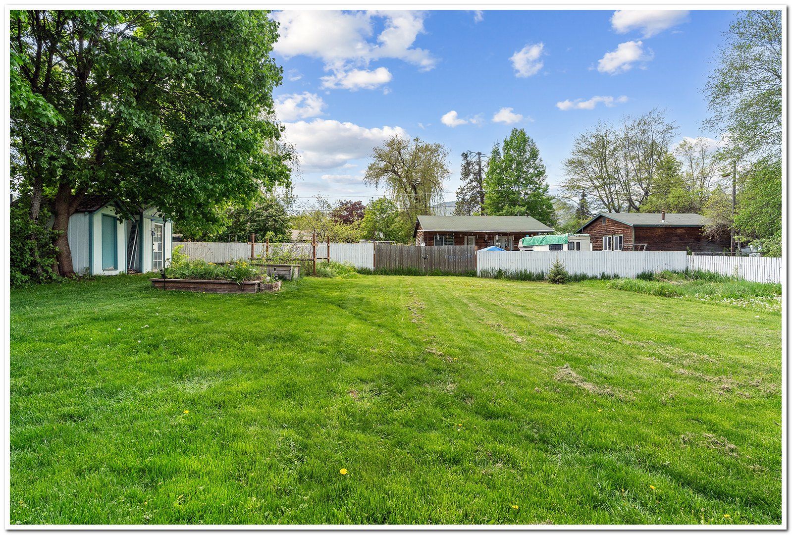 2 bd 1 bath home with a substantial 2 car garage featuring a separate 10x20 heated workshop w/ electric, shelving, & huge storage space. This 964 Sqft home sits on 4 city lots with a fenced backyard that beckons you to embrace the seasons. Updated living space features easy maintenance linoleum floors, paint, updated bathroom, carpet, and finished garage space with laundry facilities, new opener, and wood stove. Friendly covered porch welcomes you home. Mature landscaping and concrete parking area in front. Find you Backyard Bliss with lounging on your paved patio under the lighted pergola on warm summer evenings. This is after you have tended to your raised garden beds and berry bushes. 2 storage sheds to house your yard and garden essentials. Located close to shopping, restaurants, and the lake in a transitioning neighborhood.