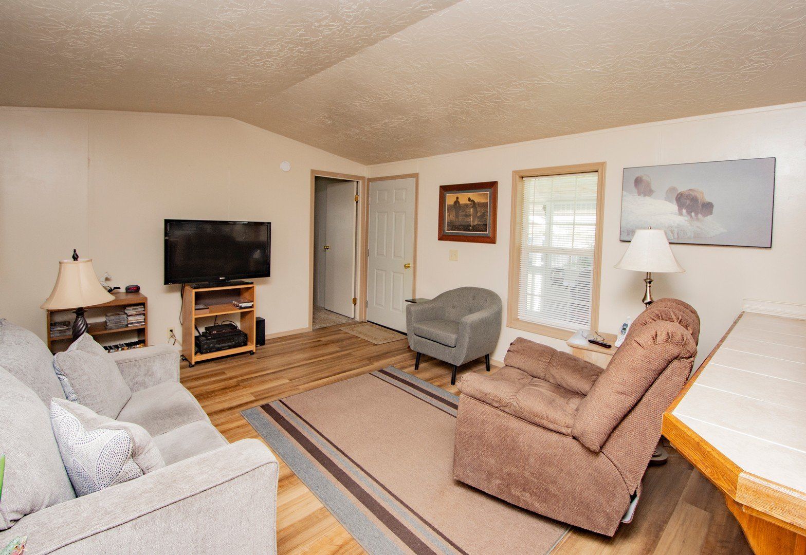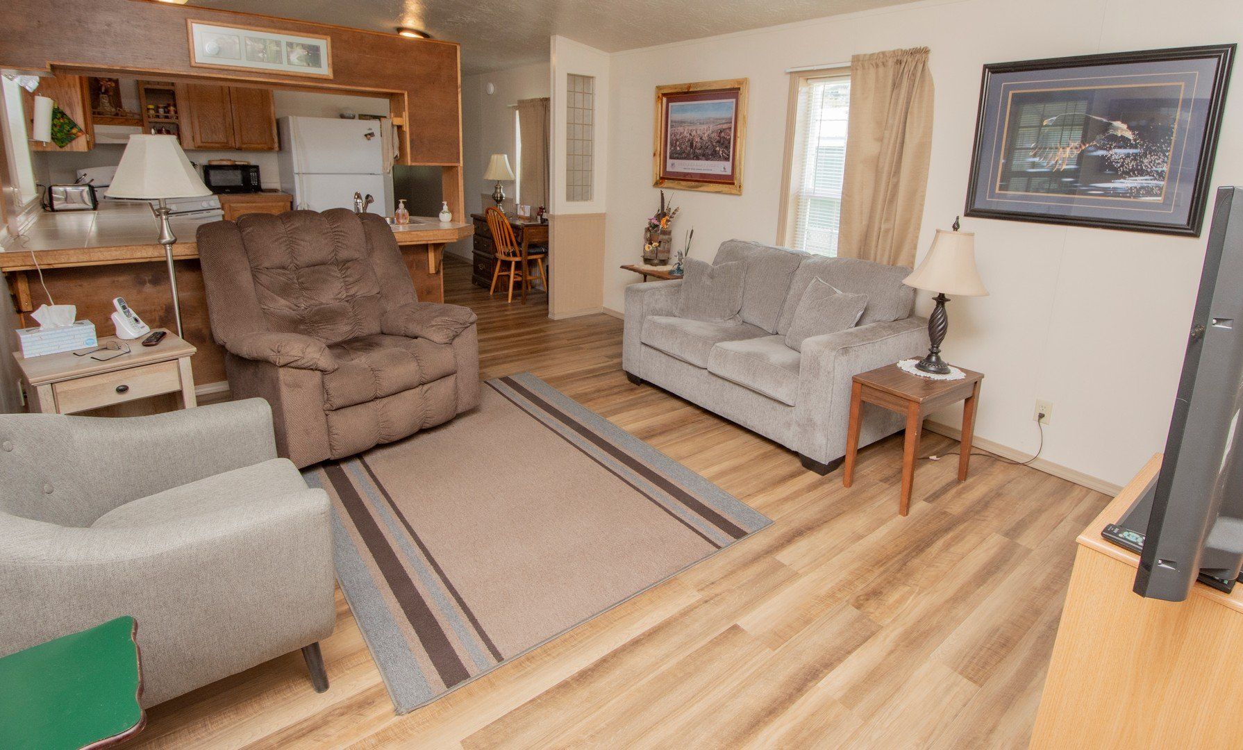 This newly renovated 3 bedroom, 1 bath home manufactured home is move in ready and waiting for you! This home has been completely renovated in 2018 with new roof, siding, flooring, paint, and more! You'll love the open floor plan with vaulted ceilings. Attached carport. The easy maintenance will be a breeze for you. Home is located on a rented lot in Cedar Court Park.
