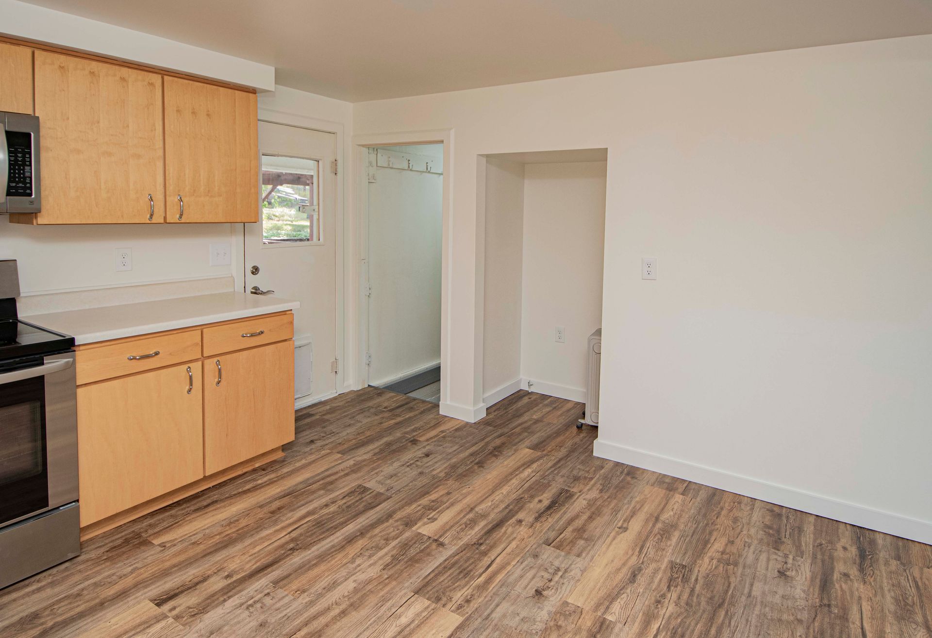 Recently updated and well maintained, in-town home on 2 Parcels with garage, workshop, and bunk house. This classic 2-bed, 1-bath Bonners Ferry home features fresh interior paint, new luxury vinyl plank flooring, and a cozy wood-burning fireplace in the living room. The main level offers 1,200 sq ft with an open kitchen, dining, and living area, spacious entry/laundry room, and efficient natural gas heat. The 840 sq ft unfinished basement provides room to expand or customize. Situated on two separate parcels totaling 0.69 acres, the property includes a 1-car garage with carport and breezeway, covered wood storage, a bunkhouse, a 17’ x 17’ workshop, and additional storage building each with electricity, plus 2 30-amp RV power boxes. Located right next to the city swimming pool and close to downtown, this in-town property offers space, versatility, and a great opportunity to make it your own.