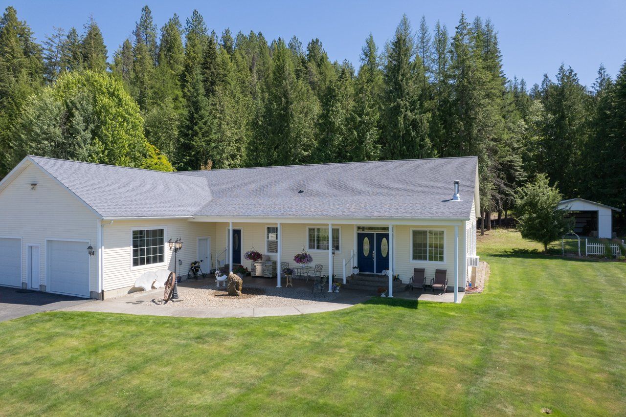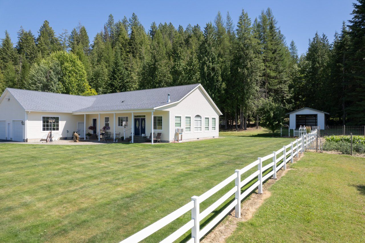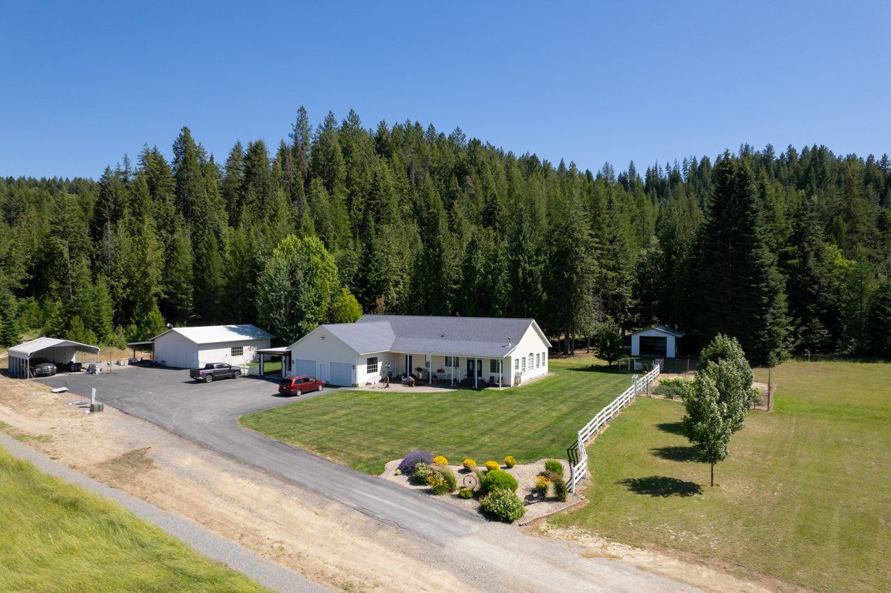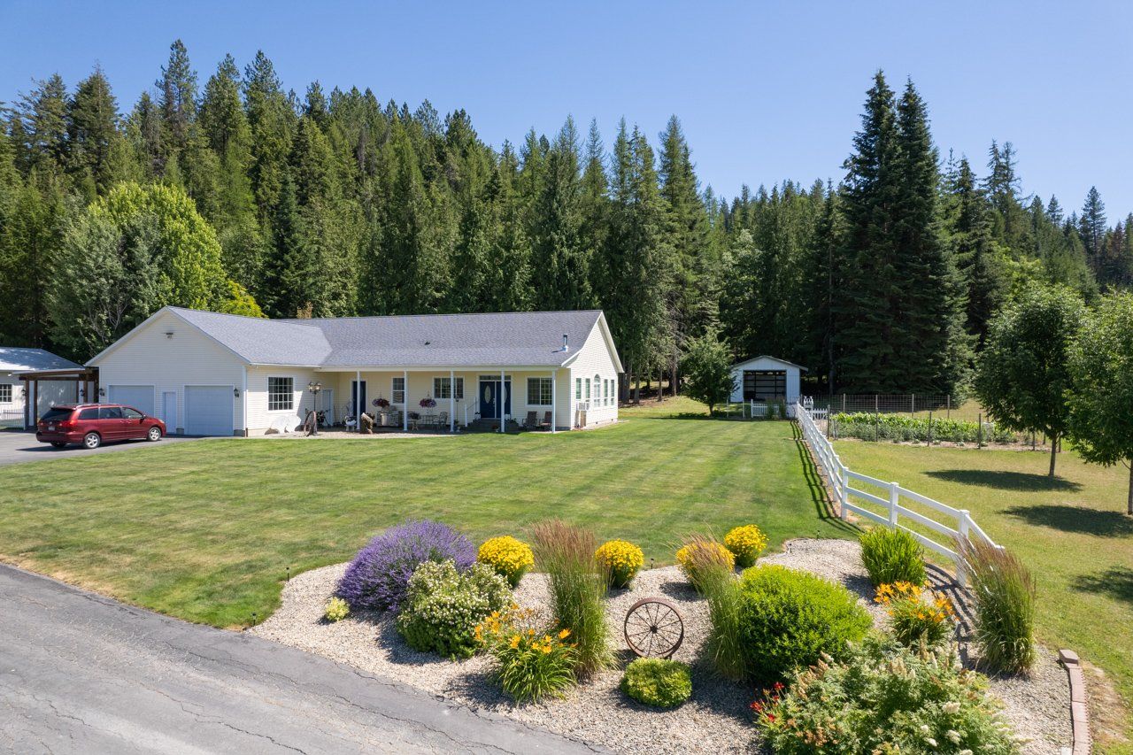 Country Elegance at the Edge of Town. 2768 sqft single level home, 2 car garage, & 30x40 metal shop on 30.93 level & wooded hillside acres. This 2 bd, 3 bath home has been meticulously cared for and loved. You will be delighted as you walk through this thoughtfully designed, custom home. The entrance leads you past floral landscaping, green lawns, shady mountain hillside, and pastoral views. High ceilings and expansive windows surround the cheerful living space. Kitchen features a bar height island, custom cabinets, & butlers pantry. Formal dining room has french doors to a private deck. Home features primary and secondary bdrm suites, family room, and laundry/mud room with 3/4 bath. 30x50 fenced garden produces premium veggies. Timbered hillside has not been logged in almost 30 years. Relax with views of the Selkirk Mtn range from your covered patio. No CCRs, city utilities, asphalt driveway, privacy, & easy access. It's easy to enjoy the good life when you live here.