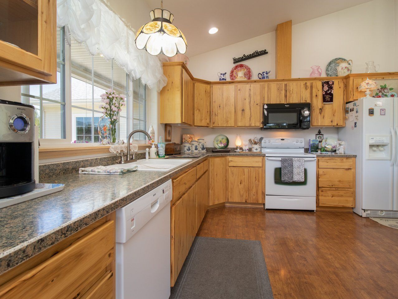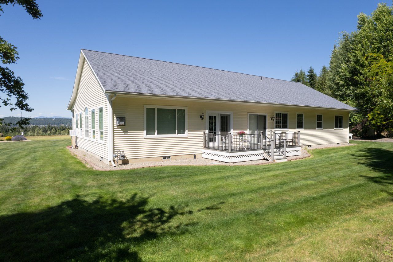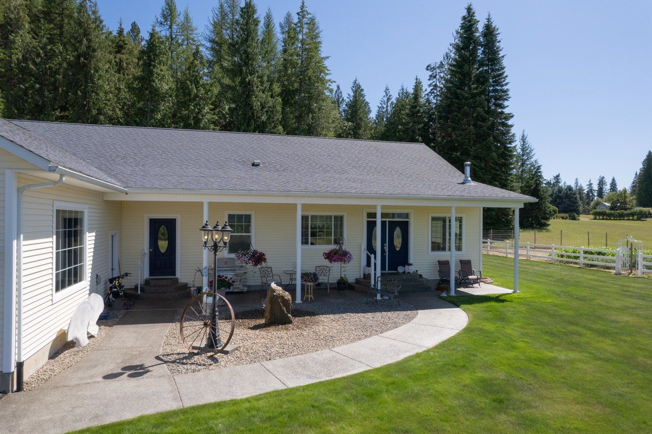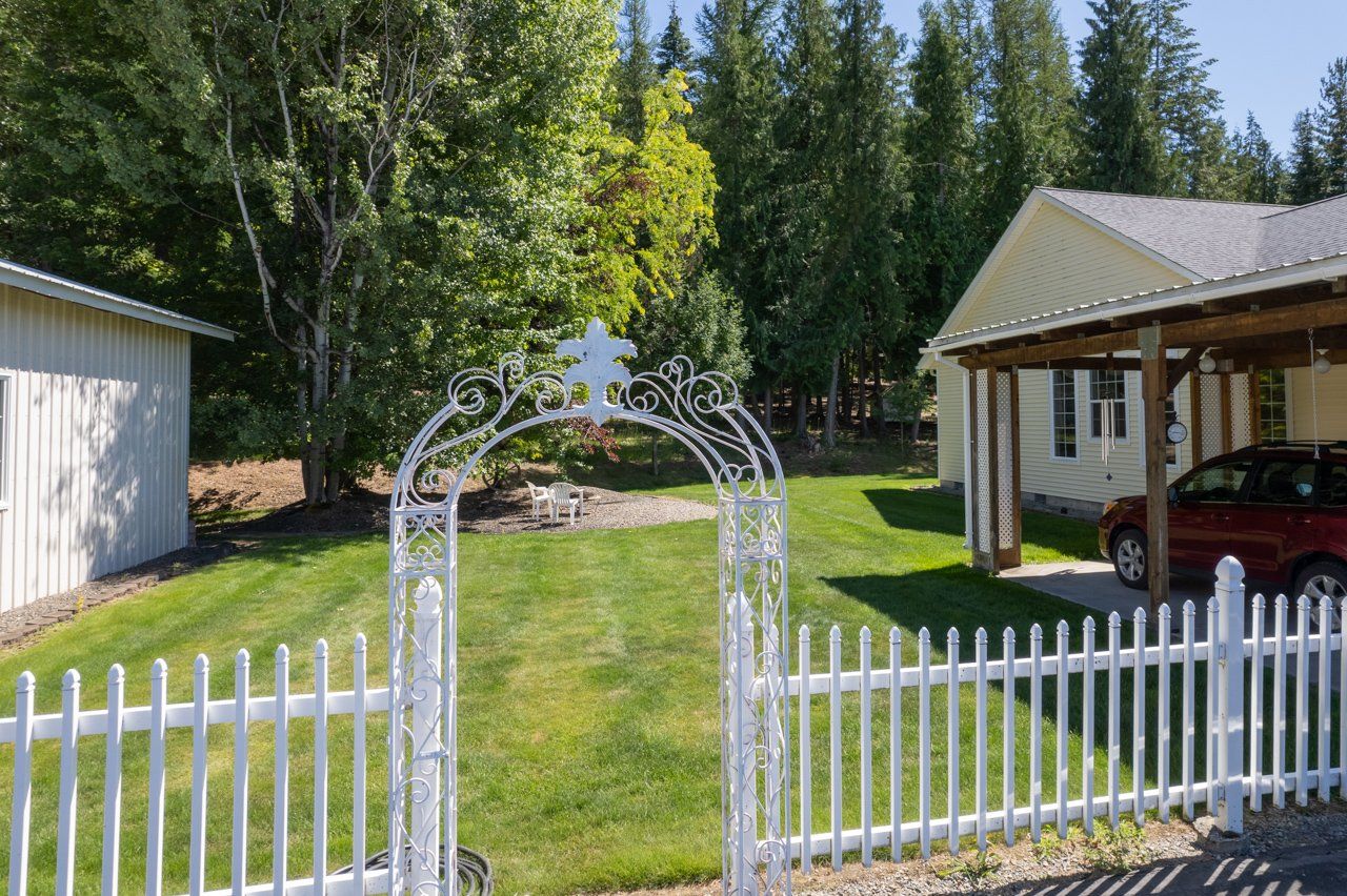 Country Elegance at the Edge of Town. 2768 sqft single level home, 2 car garage, & 30x40 metal shop on 30.93 level & wooded hillside acres. This 2 bd, 3 bath home has been meticulously cared for and loved. You will be delighted as you walk through this thoughtfully designed, custom home. The entrance leads you past floral landscaping, green lawns, shady mountain hillside, and pastoral views. High ceilings and expansive windows surround the cheerful living space. Kitchen features a bar height island, custom cabinets, & butlers pantry. Formal dining room has french doors to a private deck. Home features primary and secondary bdrm suites, family room, and laundry/mud room with 3/4 bath. 30x50 fenced garden produces premium veggies. Timbered hillside has not been logged in almost 30 years. Relax with views of the Selkirk Mtn range from your covered patio. No CCRs, city utilities, asphalt driveway, privacy, & easy access. It's easy to enjoy the good life when you live here.