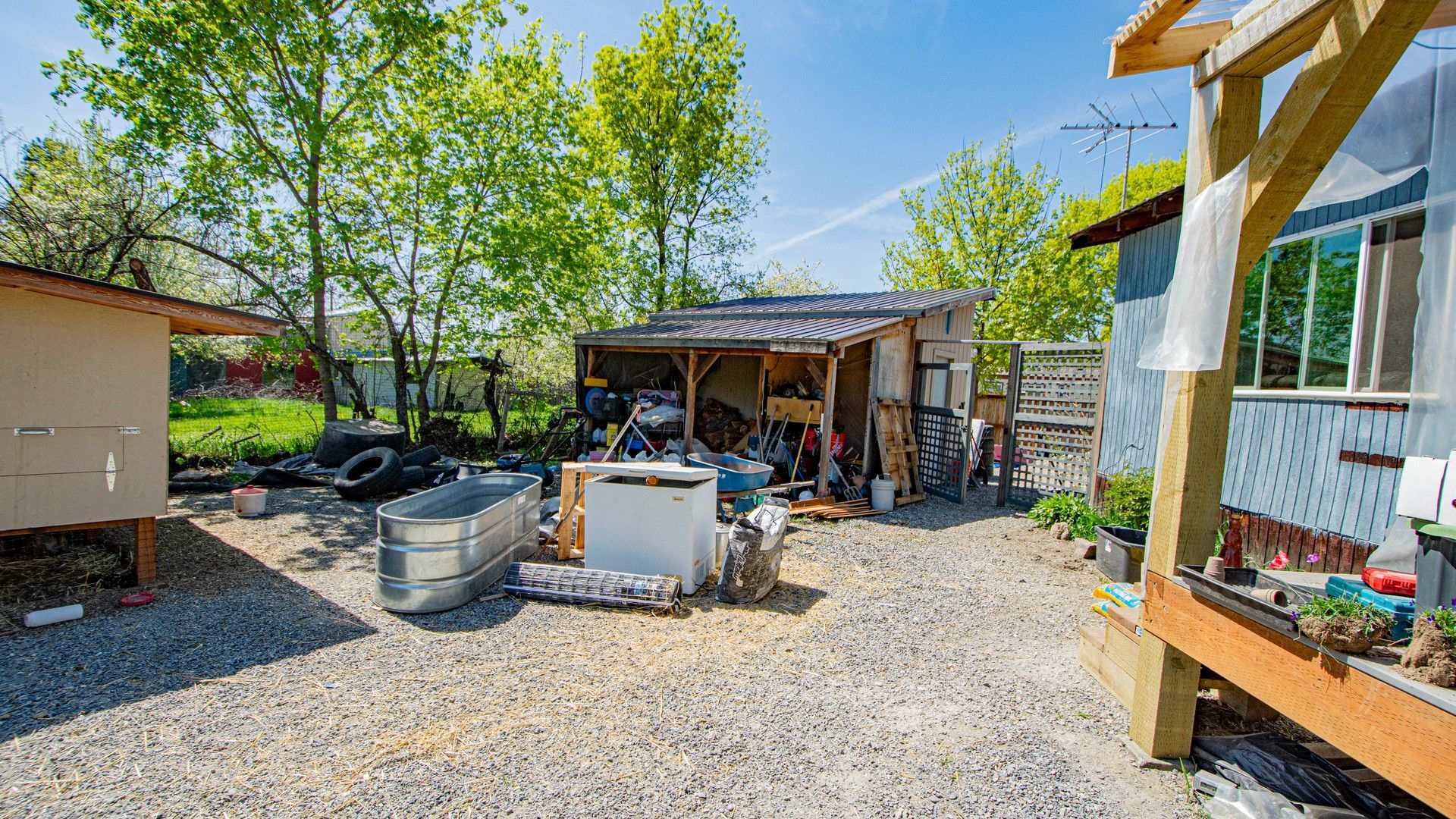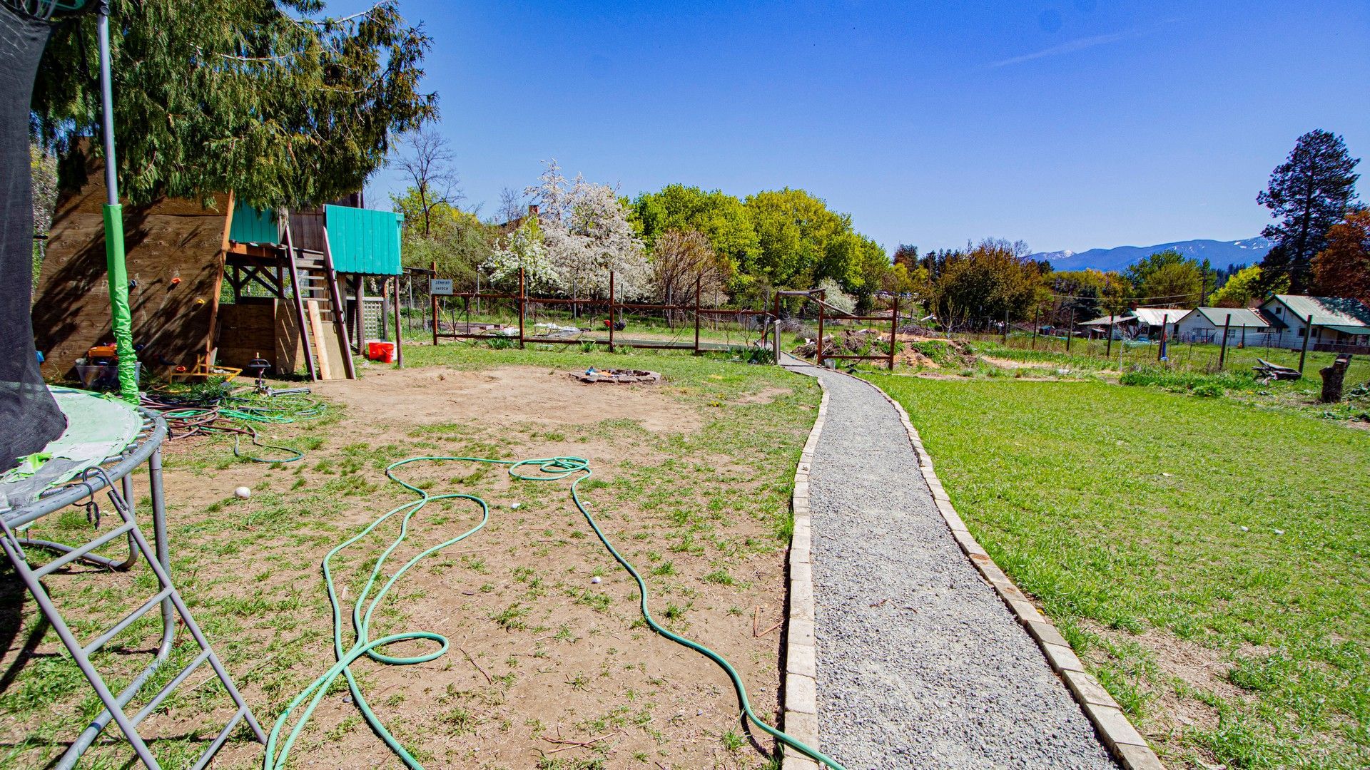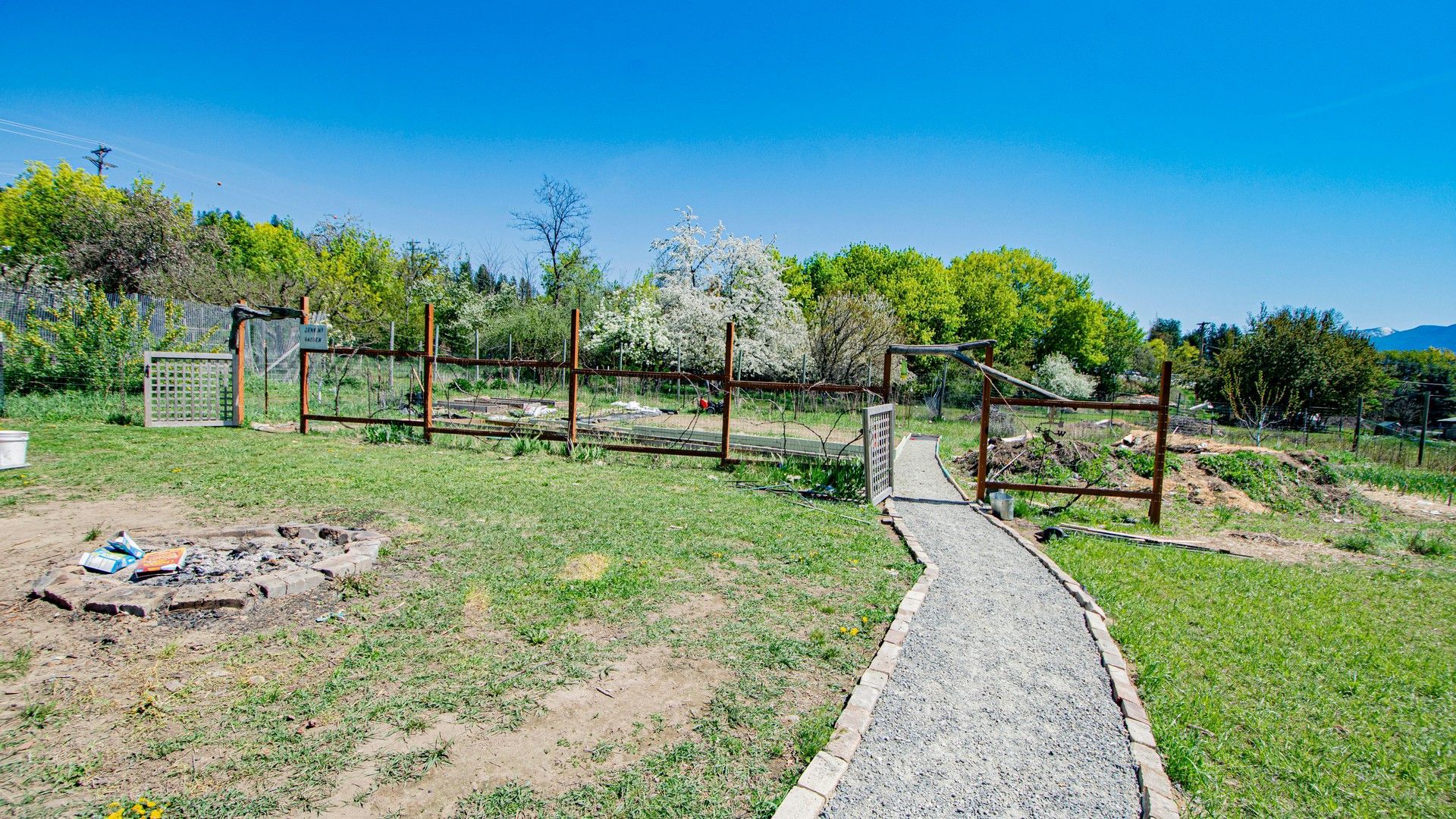 Located just minutes from the hospital, this level half-acre in Bonners Ferry offers a rare opportunity to enjoy town convenience with a country feel. The 3 bed, 1.5 bath home is a 1973 single-wide with additions, featuring a cozy wood stove and functional living space. The real star is the land—south-facing and rich with established gardens, berries (currants, raspberries, strawberries), grapes, asparagus, garlic, and fruit trees (apple, plum, peach, cherry). Mature flowers bring color all season long, and a large fenced garden, chicken coop/run, and storage shed complete the setup. A gardener’s dream and homesteader’s haven—right in town.