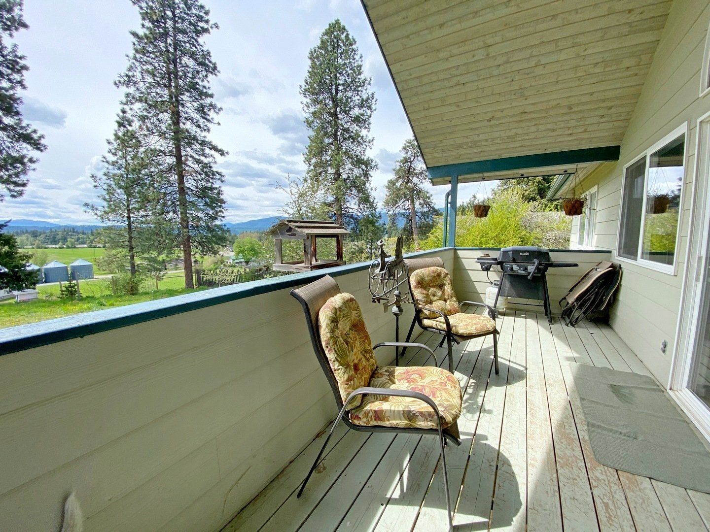 Move in Ready! 4 bed, 3 bath home on .65 acres with views of the Clifty in the Bonners Ferry city limits. Mature landscaping, fenced backyard with water feature, raised garden beds, fruit trees, berry bushes, and did we mention the jaw dropping views. 2848 SqFt home with 2 car garage. Laminate flooring throughout the main level and new carpet on the lower level. Southern exposure to take advantage of light and views. T&G vaulted ceilings in the living room with patio doors to the covered deck. Kitchen features a peninsula, newer stainless appliances, open concept with views through living room. Fully finished walk out basement has multiple rooms to accommodate hobbies, office space, and extra guests. Updated primary bdrm suite on the main level has laminate floors, heated flooring in the bath, and a custom tiled walk-in shower. Still time to plant the garden, harvest the fruit and berries, and stock up the pantry. Convenient location in town.