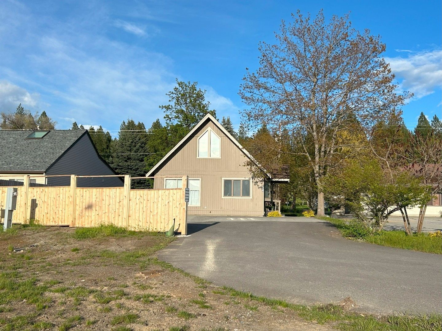 Modern Updated Home in Commercial Zone. Discover the unique blend of comfortable living & future potential with this 1,344 sq ft single-family home, situated with Hwy 95 frontage in Bonners Ferry’s commercial zone. This inviting 1½-story A frame home features 3 bdrms & 2 bathrooms, offering a cozy & practical layout for everyday living. Enjoy mature landscaping w/ sprinkler system, a privacy fence along the highway & N boundary, asphalt parking in front, & covered carport parking in the back. Updated kitchen, laundry, & laminate floors throughout. Open loft space overlooks the catheral great room. Natural gas fireplace and wall A/C units for comfort. While perfect as a comfortable residence, the commercial zoning opens doors for future business ventures or investment possibilities down the road. It’s an ideal opportunity for a homebuyer looking to live close to town amenities or for an investor seeking a property with built-in flexibility. Don’t miss the chance to make this versatile piece of Bonners Ferry your new home—and your smart investment in the future!