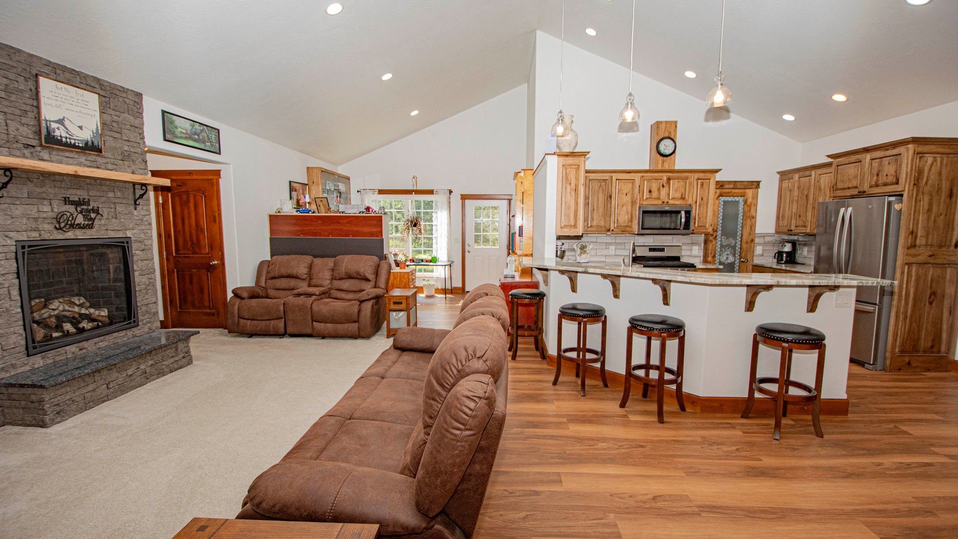 Beautiful 2023 Custom Home on 1.62 Acres in Bonners Ferry. This thoughtfully designed 3-bedroom, 3-bath home offers 2,500 sq ft of stylish, functional living space in a peaceful North Idaho setting. Enjoy a split-bedroom floor plan, spacious open-concept living and dining with vaulted ceilings, oversized windows, and a cozy natural gas fireplace. The gourmet kitchen features custom cabinetry, granite countertops, a gas range, pantry, and breakfast bar - perfect for entertaining or everyday living. The private primary suite includes a walk-in closet, dual vanity, tub, and walk-in shower. Additional highlights include a main-floor office space, a large laundry/mudroom, and a 544 sq ft upstairs bonus suite complete with potential kichen space and full bath - ideal for guests or extended stays. Outside, the level lot is set up for both lifestyle and utility with a fenced garden area, three storage sheds, and a cleared shop pad with water, power, and gas already in place. You'll also appreciate the oversized 1-car garage, composition roofing and Starlink internet. Tucked in a quiet setting just minutes from town - this is North Idaho living at its finest.