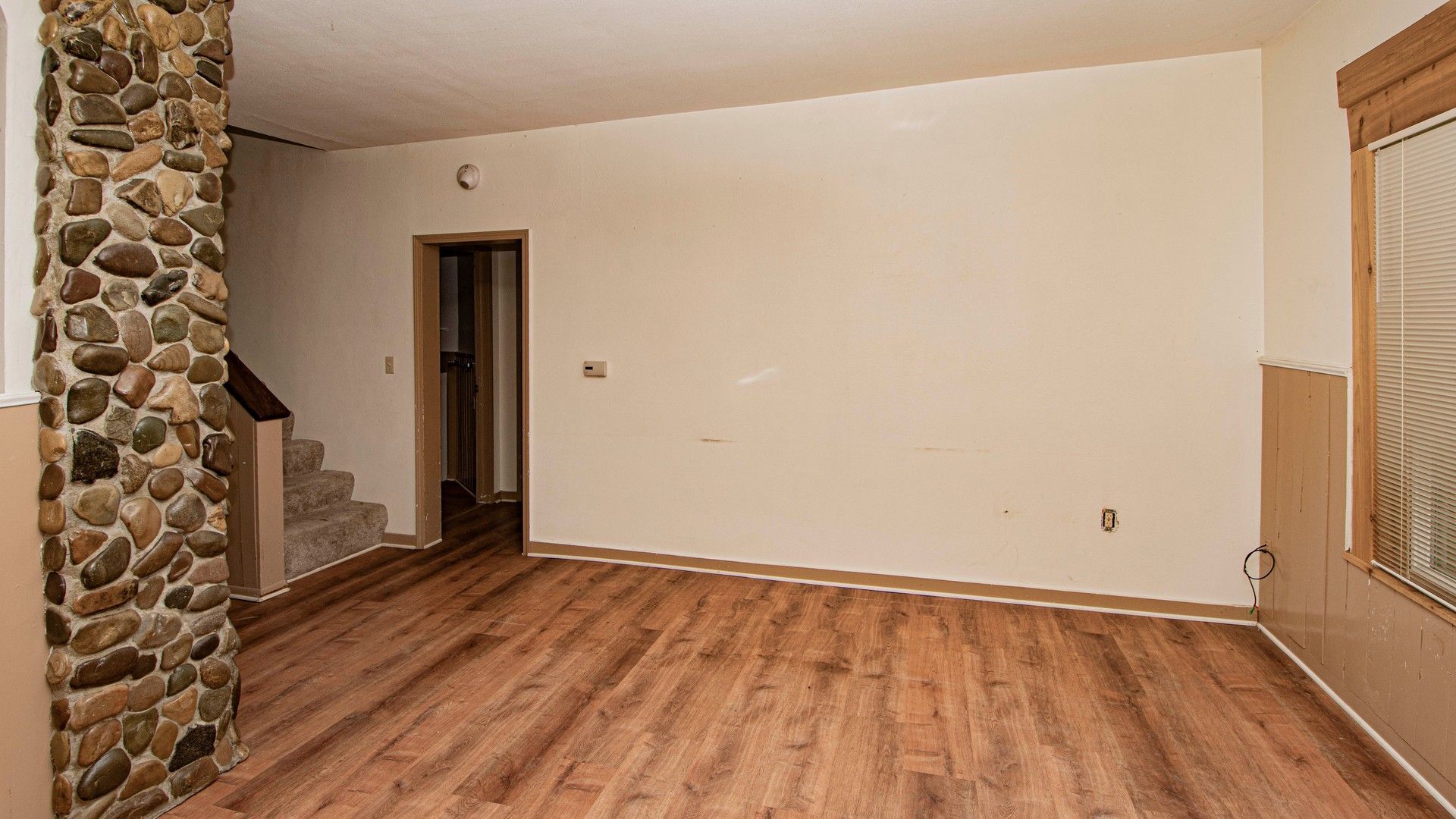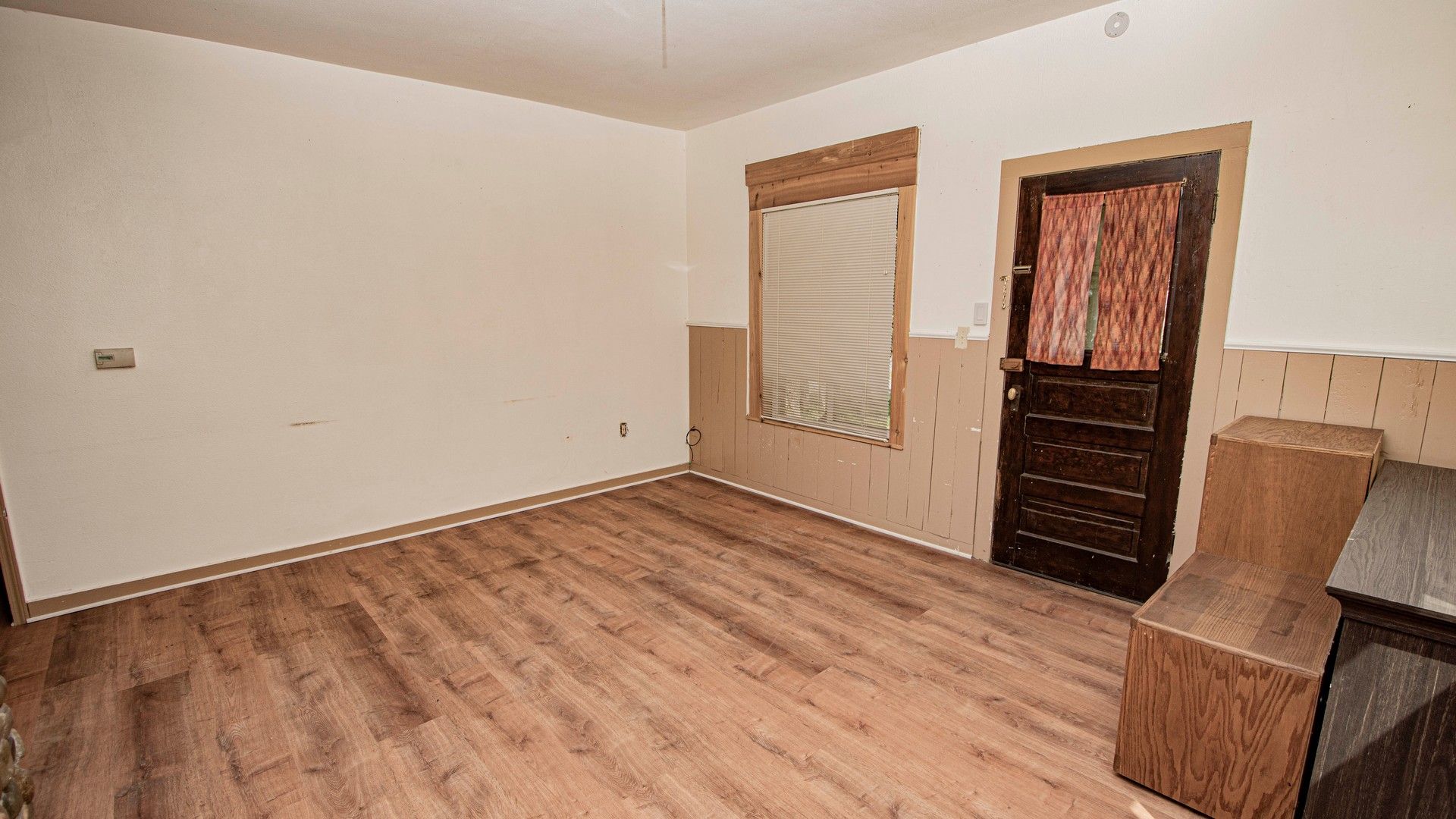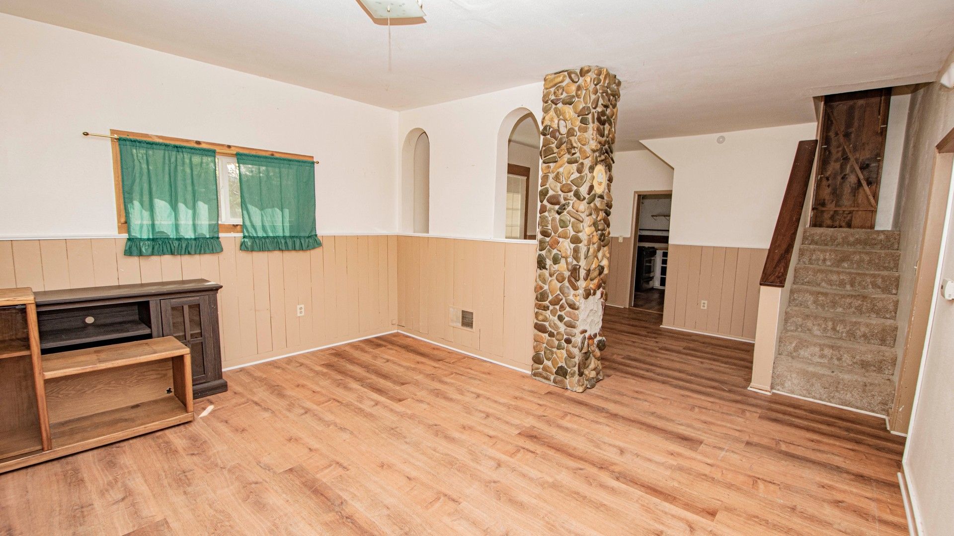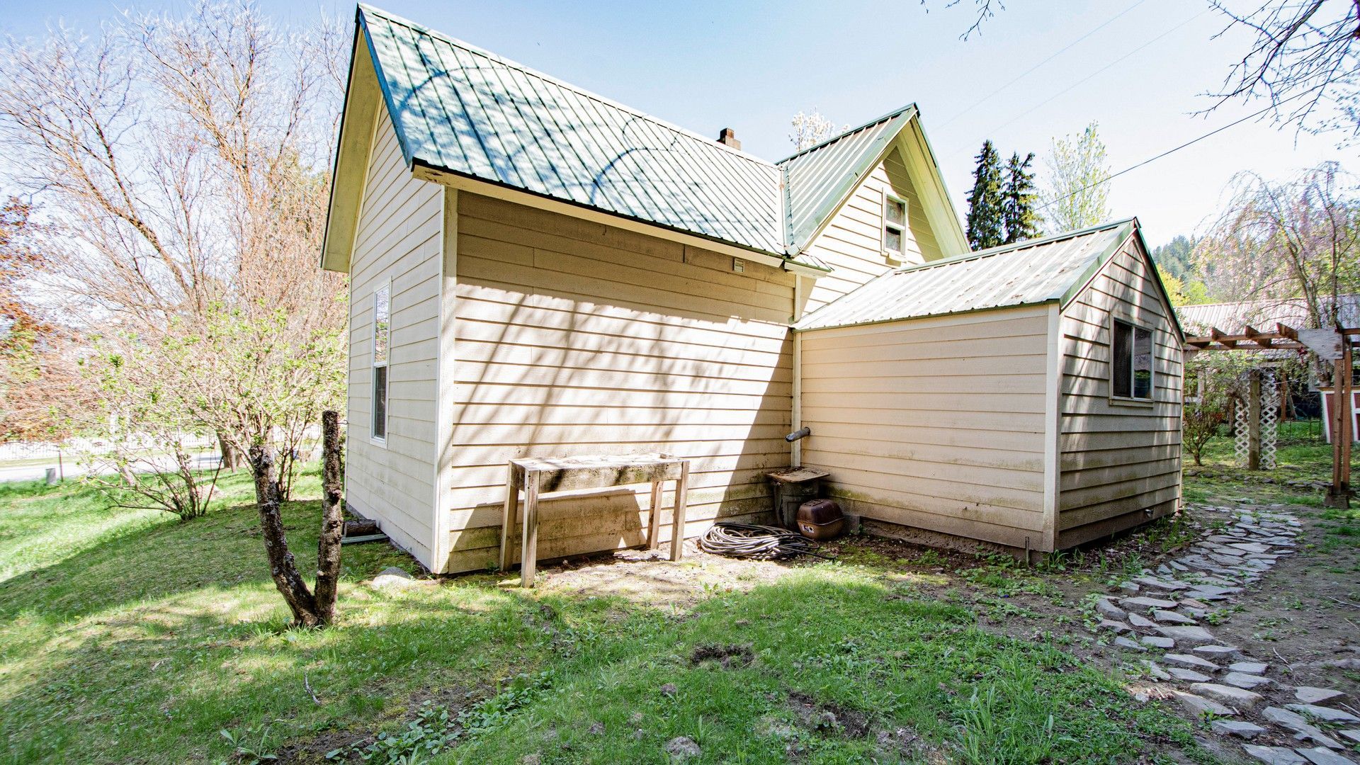 Welcome to this delightful 3-bedroom, 1-bath home, offering a perfect blend of vintage charm and modern convenience in the heart of Bonners Ferry. Located within walking distance of downtown, this home provides easy access to local shops, restaurants, and the vibrant community that makes North Idaho so special. Inside, the main floor features a cozy living room, dining area, and a kitchen/laundry combo with rustic appeal and ample natural light. Two comfortable bedrooms and a full bath complete the main level. Upstairs, a versatile space serves as a cozy reading nook or office entryway, leading into a larger bedroom - perfect for a private retreat or transforming into a primary suite. This home is full of character, from the unique stone chimney in the living area to the charming architectural details of its era. The forced-air natural gas wall heating keeps things cost-effective, making this an excellent option for a starter home or investment property.