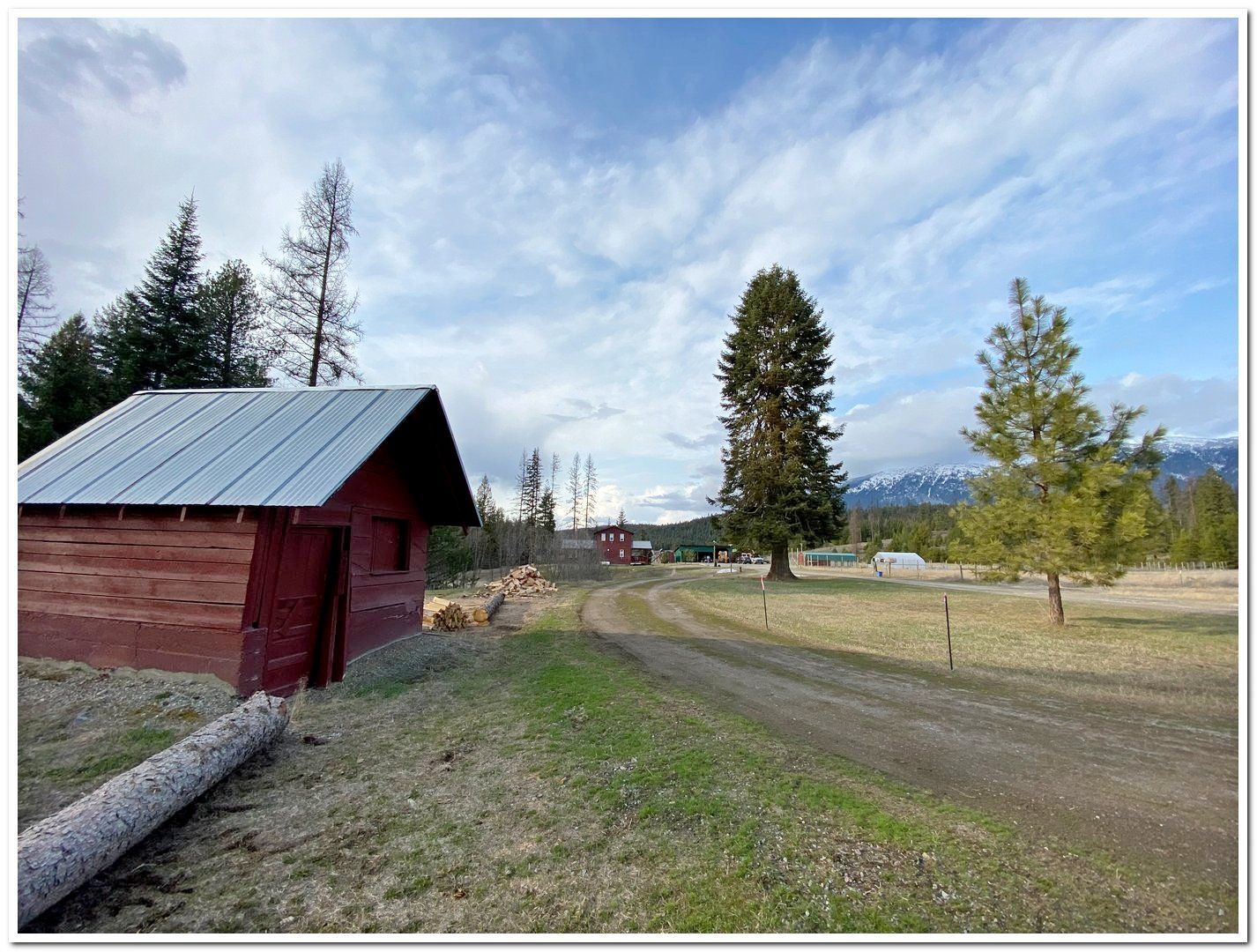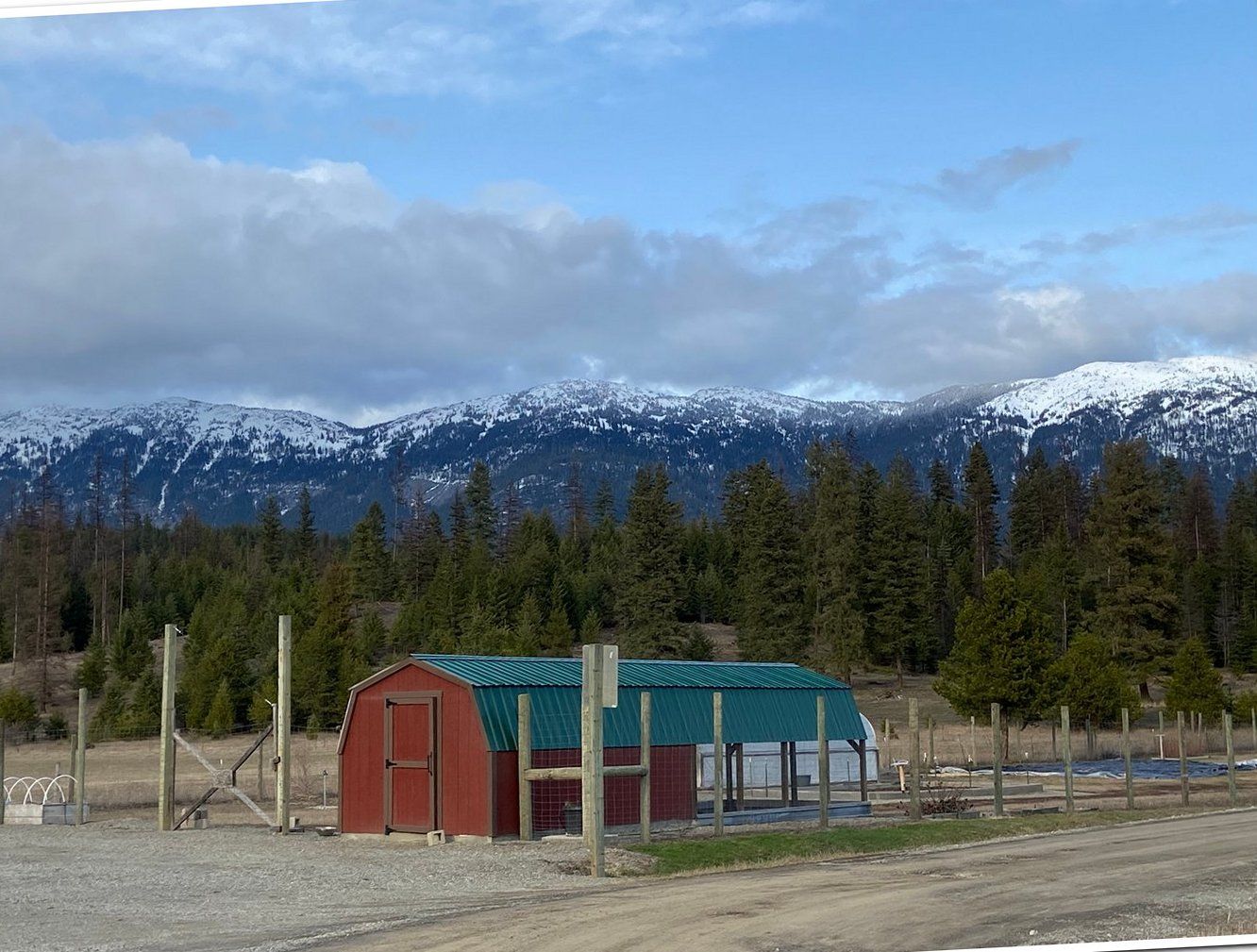Homestead Hideaway on 5.17 acres with a private pond and Sand Crk in the NW corner. Embrace simplicity in this cozy 1000 sqft cabin with 2 bdrms and 1 bath. Newly remodeled kitchen with 36" Viking range/oven, hickory cabinets, & vinyl floors. Bathroom has a tiled bath and custom vanity. Expand your gardening skills on over an acre of fenced space featuring a greenhouse with raised beds and orchard planted with apple, plum, & kiwi trees. Raspberries, rhubarb, artichokes, & asparagus are also established. Covered porch features spectacular panoramic views of the Purcell Mtn Range. Expansive private backyard deck overlooks the shady pond surrounded by trees. Partially fenced acreage for horses or animals with barn building materials on site. 40 GPM private well to supply all your water needs. Covered parking with 3 bays, custom storage shed with shelving, and workshop shed with electric. This property will renew your spirit and nourish your soul.