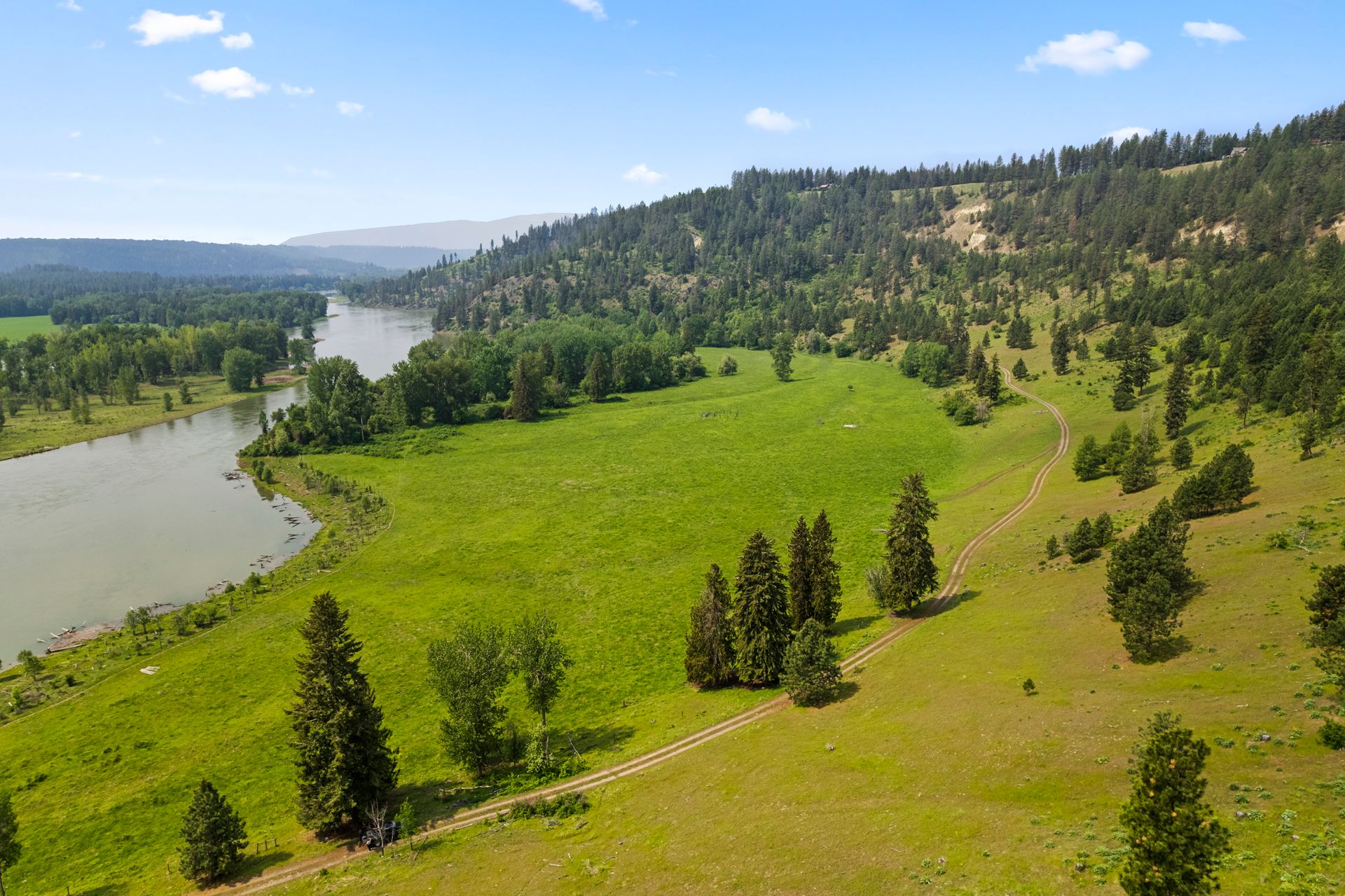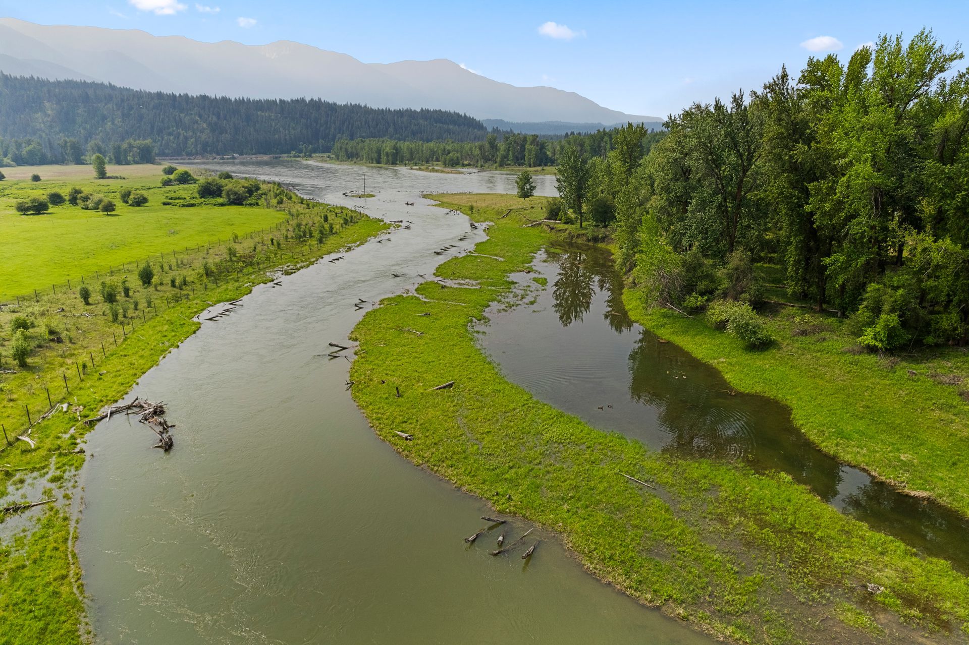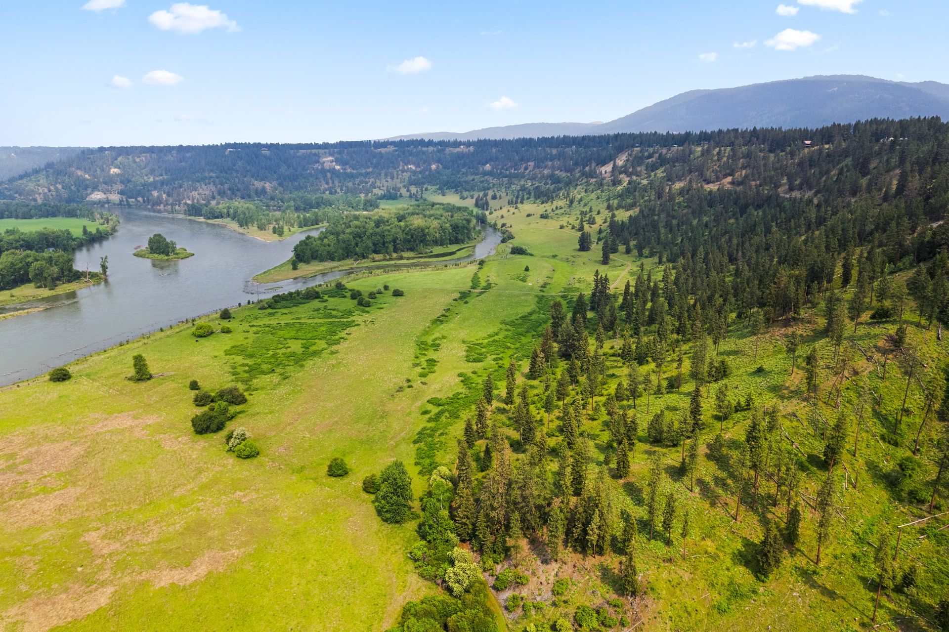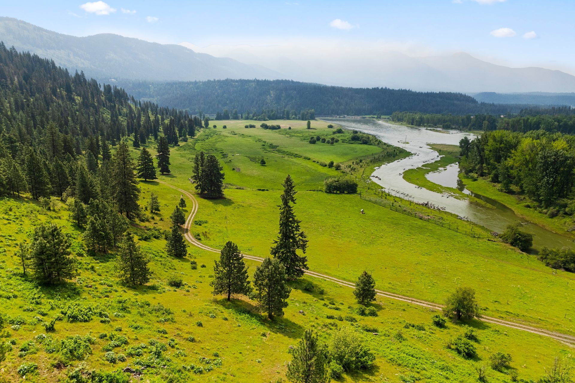 The Kootenai River Ranch is a rare opportunity to own 1.5+/- miles of beautiful Kootenai River frontage. Including 218+/- acres of buildable land and 2 solar powered wells, which make the possibilities endless. The southern exposure of this property allows you to enjoy the sunny days year-round, while also being one of the first properties to thaw out each spring. Private end of road access and developed roads throughout the property allow for you to start building your dream property right away. Currently leased as summer grazing for cattle, the vegetation is lush and sub irrigated for a green sustainable pasture. River bank restoration was put into place nearly ten years ago to ensure that the banks of this property will be stable and here for centuries to come.